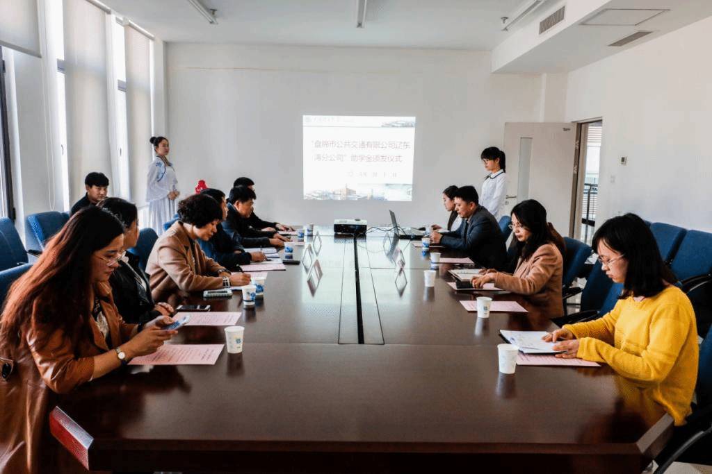 3月22日下午2:00,盘锦市公共交通有限公司辽东湾分公司助学金颁发仪式在校区行政服务楼N208会议室举行。盘锦市公共交通有限公司总经理孙福明、辽东湾分公司党支部书记兼经理赵新、辽东湾分公司党支部副书记李素荣等人出席仪式,盘锦校区党工委副书记兼管委会副主任郭金明、盘锦校区学生工作部部长杨晓英、盘锦校区总务部部长于小平、公交公司辽东湾爱心助学金获得同学参加仪式,仪式由学生工作部郑晰月主持。
