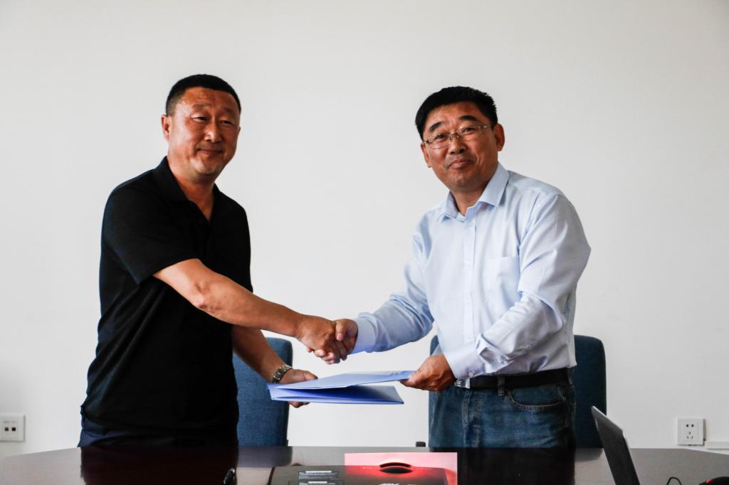 双方代表签署捐赠协议,郭金明为捐赠方颁发捐赠证书。
