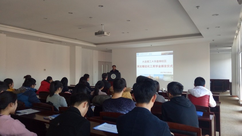 12月6日下午2:00,大连理工大学盘锦校区河北镕达化工奖学金颁发仪式在G01-E402举行。河北镕达环保科技有限公司副总经理李友国,大连理工大学盘锦校区党工委副书记兼管委会副主任郭金明,校区科研与学科工作部、学生工作部等相关部门领导出席。
