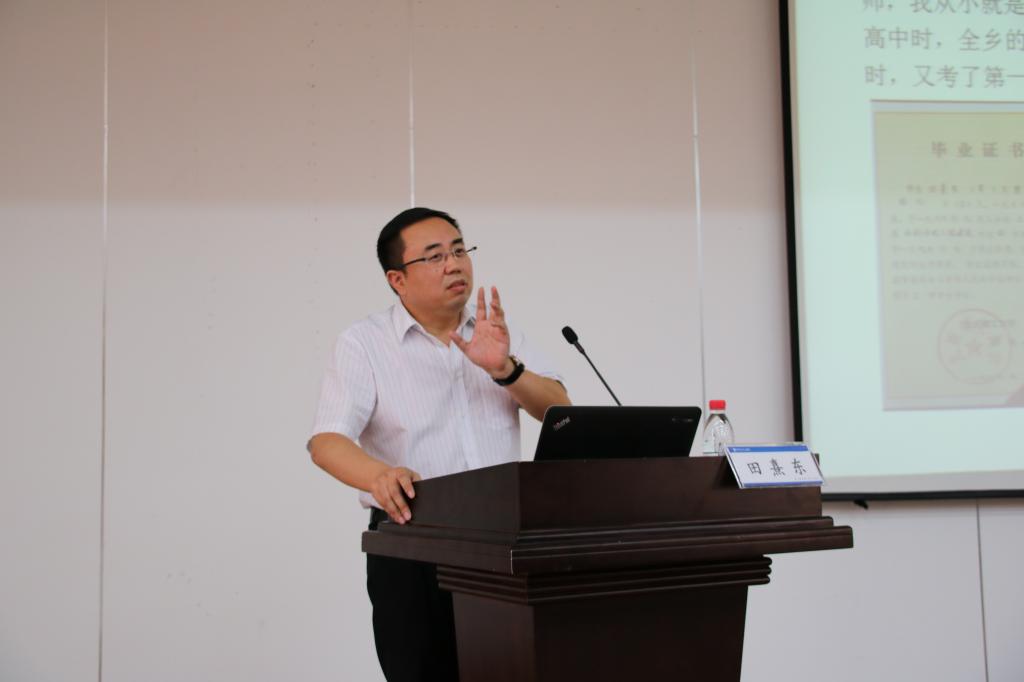7月7日下午2时,田熹东学长开始演讲,开场以校友身份与现场同学进行互动,拉近距离,将大家带入他的自身经历:三个“十五年”。田熹东学长活用历史故事深切劝导大家要珍惜现在的时间,做好素质教育的多方面知识积累,并尊重中国传统文化。他提醒同学们,在大家步入工作岗位时,身份的转变、专业深度的不足、复杂的人事关系,这些都是对每个人的重重考验。田熹东学长向大家分享他对于公司建设的感悟,提出许多创业建议,并着重强调同学们应时刻记住来路,学会感恩,这是在创业之路上能取得成功的基础。他用荧幕向同学们展示出两幅墨宝,一书“大成至朴”,一书“广大精微”。田熹东学长逐一进行深入解读,使同学们受益匪浅。随后,田熹东学长还为大家提供了精心准备的七点建议。